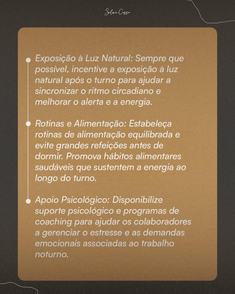 Com ações simples, como adaptar a iluminação ou oferecer suporte emocional, você pode transformar a experiência de trabalho noturno em algo mais saudável e sustentável. ✨